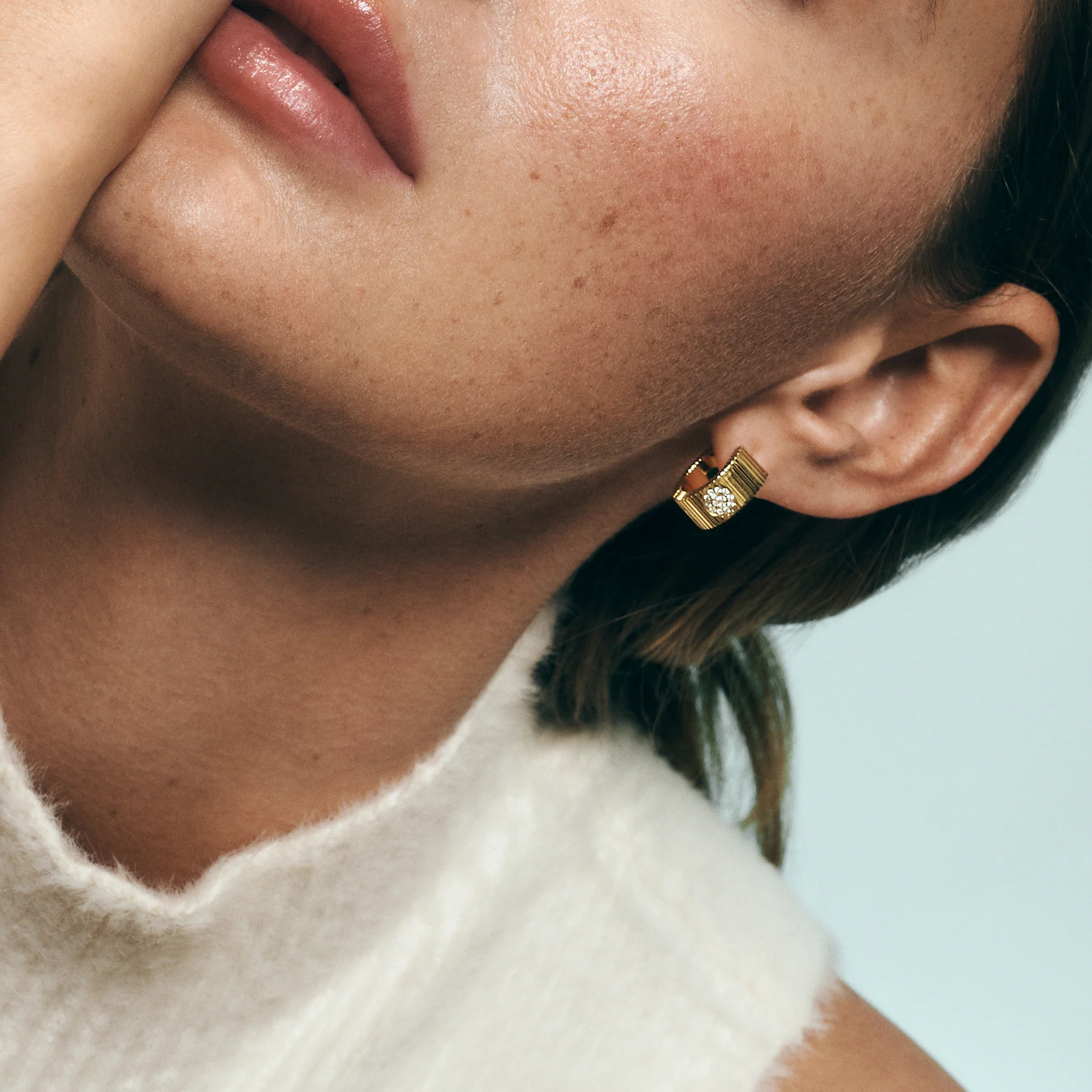 Videz uhanov ni le modna izbira, ampak lahko vizualno vpliva na proporce obraza. Kratki uhani lepo poudarijo čeljustno linijo in dopolnjujejo dolge lase, medtem ko dolgi uhani z optičnim učinkom podaljšajo vrat ter laskajo okroglemu ali srčastemu obrazu. Če prisegate na vsakdanjo udobnost, pa boste cenili tudi različne tipe zapiranja – od klasičnih metuljčkov in klipsov do varnih zaponk, ki omogočajo nošenje skozi ves dan brez neprijetnosti.